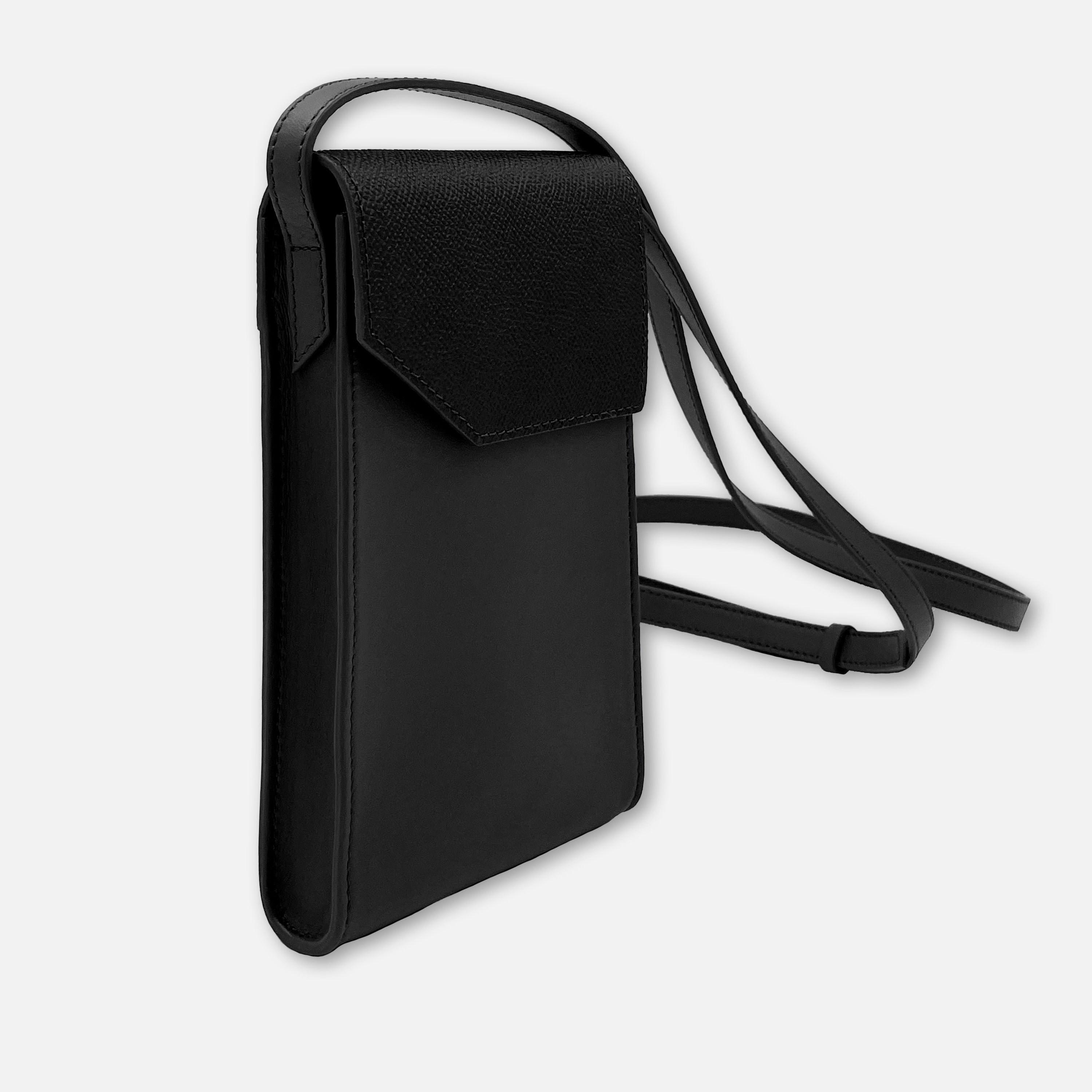 Its compact size allows it to accommodate a mobile phone such as iPhone Pro Max as well as a card holder or your daily essentials.